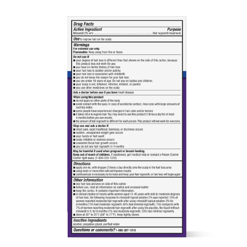 모발 재성장에는 시간이 걸립니다. 미녹시딜 국소 솔루션 2%에 효과가 생기기 시작하는 경우 모발 재성장을 유지하고 계속하기 위해 하루에 2번 사용해야 합니다. 최상의 결과를 보려면 최대 8개월의 사용이 필요할 수 있습니다.